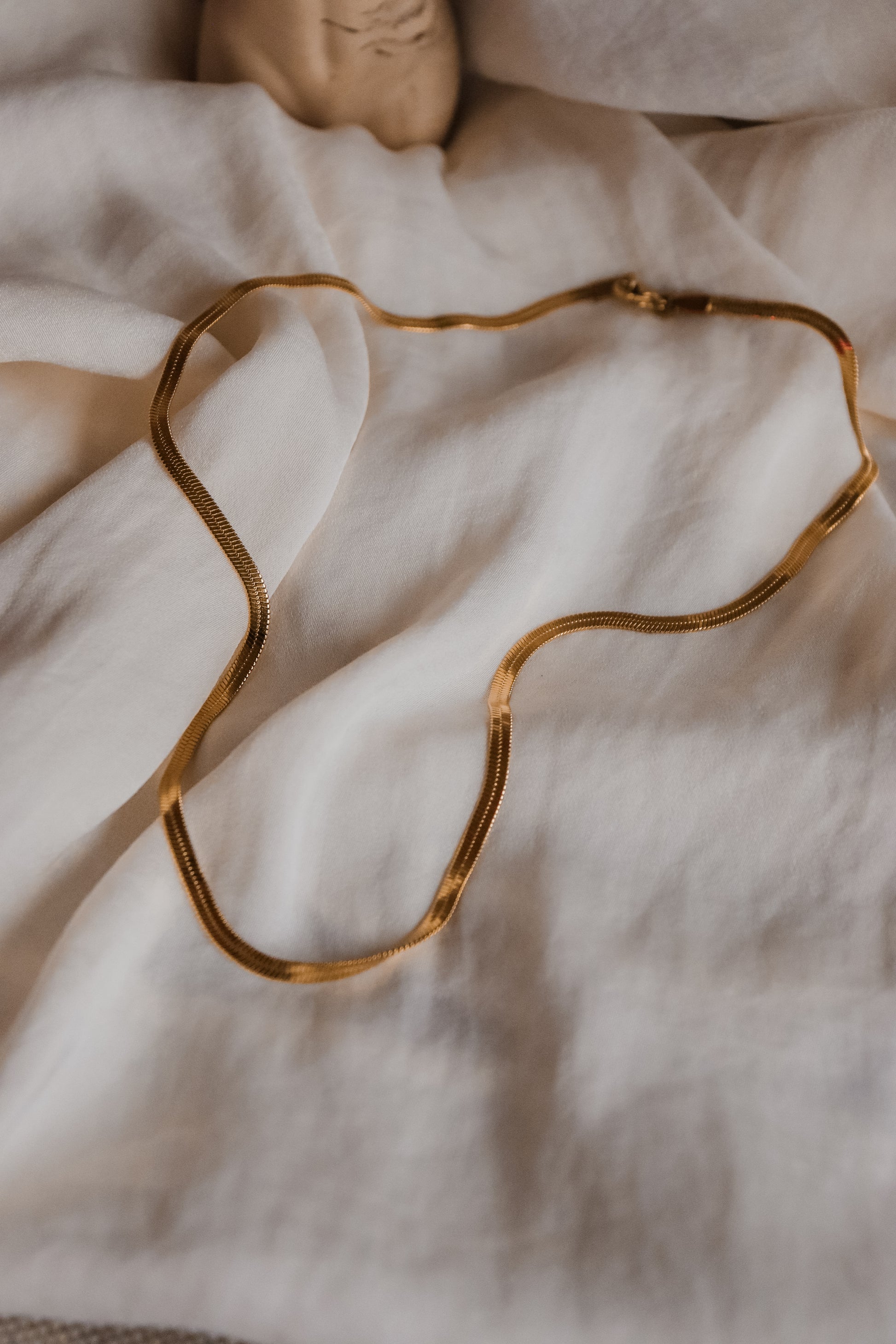 • Fio de Malha Snake Espalmada Dourada em Aço Inox com Detalhes